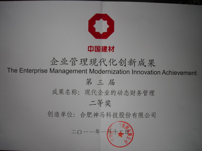 本次会议还表彰了一批企业管理现代化创新成果,,,,,并为获奖单位和个人颁奖 。 。。。。我公司“现代企业的动态财务管理”荣获二等奖 。 。。。。