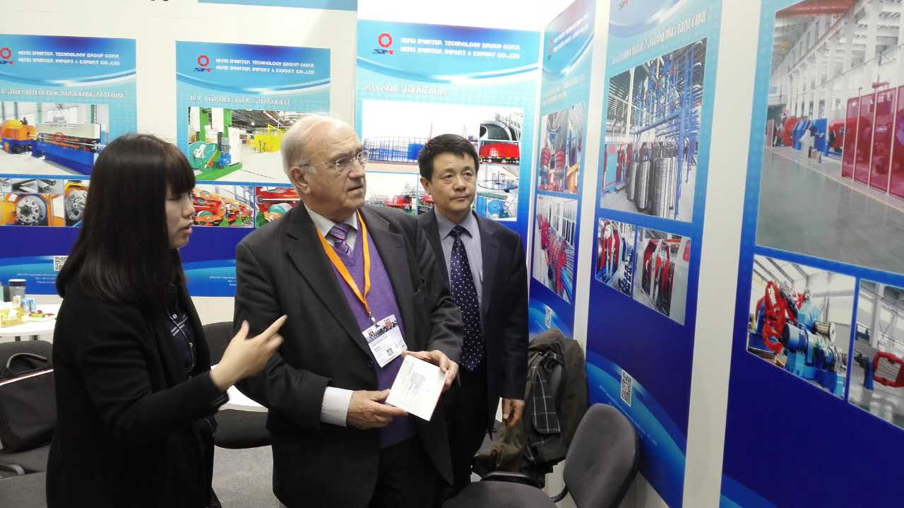 我司已连续多次参加此行业展会,,,,,,,,并在竞争激烈的欧洲馆中占据一席之地。。。。。。展会期间,,,,,,,,约有来自世界各地的50多家客户到我公司展台了解信息和洽谈业务。。。。。。其中不乏有连续多年使用我司设备的老客户,,,,,,,,也有不少通过各种渠道吸引而至的新面孔。。。。。。利用展会的机会,,,,,,,,我们与法国某集团进行了深入沟通,,,,,,,,确定了约五百万人民币订单的具体条款。。。。。。值得一提的是,,,,,,,,除了电缆行业的专业观众,,,,,,,,也有来自欧洲的线缆设备制造商拜访我司展台,,,,,,,,特别在海缆设备方面,,,,,,,,表达出了各种形式合作的意愿,,,,,,,,并约定展会后来我司参观考察,,,,,,,,商谈合作细节。。。。。。
